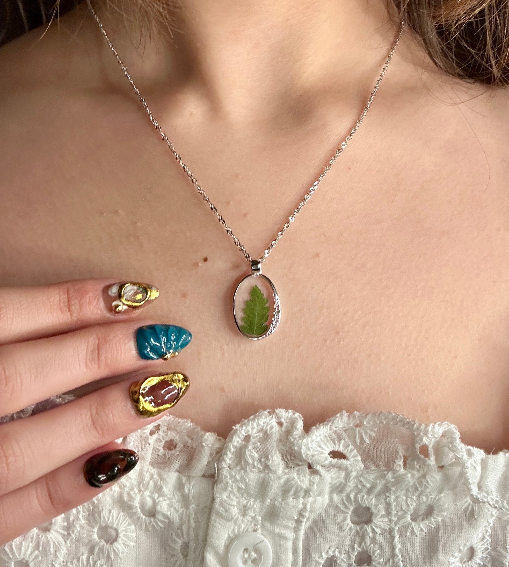 In floriography, the fern means sincerity, endurance, and secret love. It is the symbol of what grows quietly, away from the spotlight—steady, hidden, and strong. Not made for bouquets, the fern belongs to the forest’s hush, where roots hold memory and shadows feel like home. In folklore, ferns are portals—doorways to other realms. Druids believed they offered invisibility, a bridge to fae folk and forgotten knowledge. In Eastern Europe, they speak of a mythical fern flower, said to bloom only once each year. Whoever finds it gains insight, luck, and the language of trees. But only the pure-hearted may see it. Once, in a quiet forest, a girl brushed past a fern and broke its stalk. A fairy appeared—not glittering or grand, but watchful, worn, and grieving. “My child needs a guardian,” he said. “If you stay, I’ll take you somewhere softer than this world.” She kissed the fern and whispered: “For a year and a day, I promise to stay.” In the realm beyond, she cared for his child. They wandered mossy glades, spoke in silences, and when she cried, the fairy touched a fern-leaf to her eyes—and her tears vanished. For human sorrow had no place in fairy dwellings. But magic always ends. A year and a day later, she woke in her old bed. Changed. To wear the fern is to carry the feeling of belonging elsewhere— To endure quietly, to love in silence, To keep strange promises in your heart. A charm for those who have lived between worlds, and bloomed anyway.