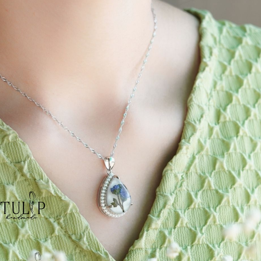 Forget-me-not: A Flower of Love and Memory For centuries, the forget me not flower has been a timeless symbol of love and remembrance — a quiet way to say, “Do not forget me.” In Victorian times (1895), people pressed forget me not flowers into books, lockets, and secret letters — small treasures holding the unspoken promise: “Even when I cannot say it, I still hold you close.” During wartime in England, soldiers gave their loved ones forget me not bouquets before leaving for battle, believing that as long as the forget me not was kept safe, they would find their way back home. In France, lovers exchanged forget me not flowers before long separations — tucking them into letters or wearing them close to their hearts — a silent plea: “Hold me in your thoughts, even when I am not by your side.” Across cultures and centuries, the forget me not flower meaning has remained unchanged: to be remembered, to stay close, no matter the distance. Who is the one you never want to forget — or be forgotten by? Explore our forget me not bouquets — inspired by the folklore, meaning, and delicate beauty of the forget me not flower plant. NOTE : Luxury Velvet Box comes with this pendant , hence you dont have to choose seperately.