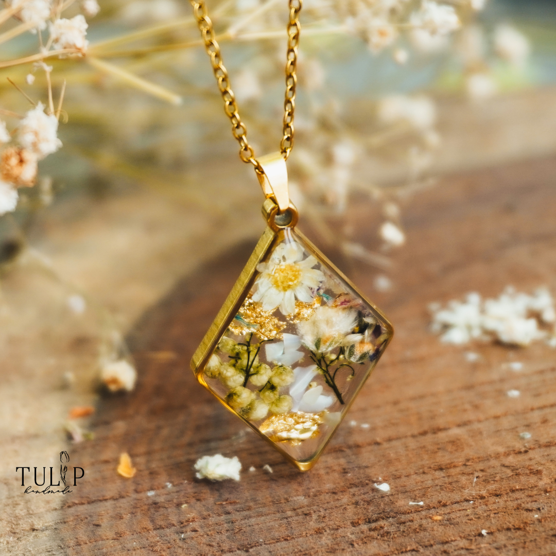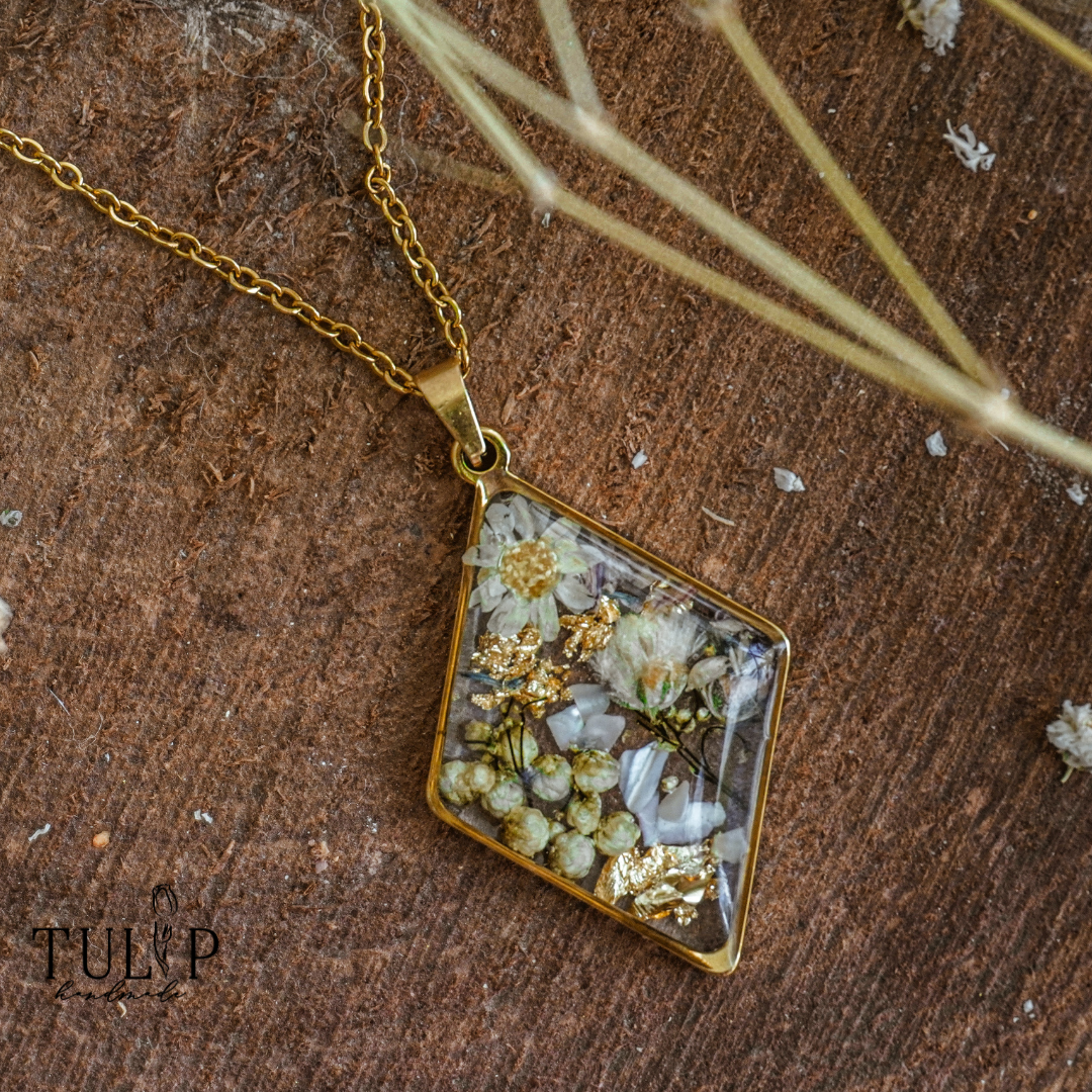 Step into the realm of ‘Lost Forest,’ where the spirits of nature weave their enchantment. This pendant, adorned with Ozothamnus, Baby’s Breath, and dainty Daisies, resonates with the very heart of the forest. Ozothamnus, like the ancient forest spirits, cradles the echoes of timeless stories. Baby’s Breath, akin to forest mists, embodies the pure, ethereal moments found in the woods. The small Daisies, reminiscent of forest wildflowers, capture the innocence and beauty of nature’s embrace. In ‘Lost Forest,’ we honor the spirits of the woods, where every leaf and bloom holds a story. This pendant is your connection to the whispers of nature, a wearable token of the forest’s timeless wisdom and boundless magic.